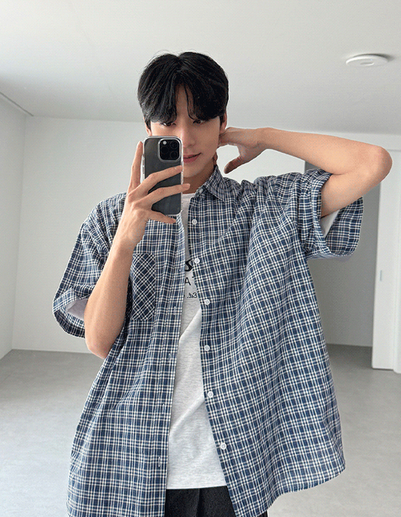 nerd check over fit 半袖シャツ 30305